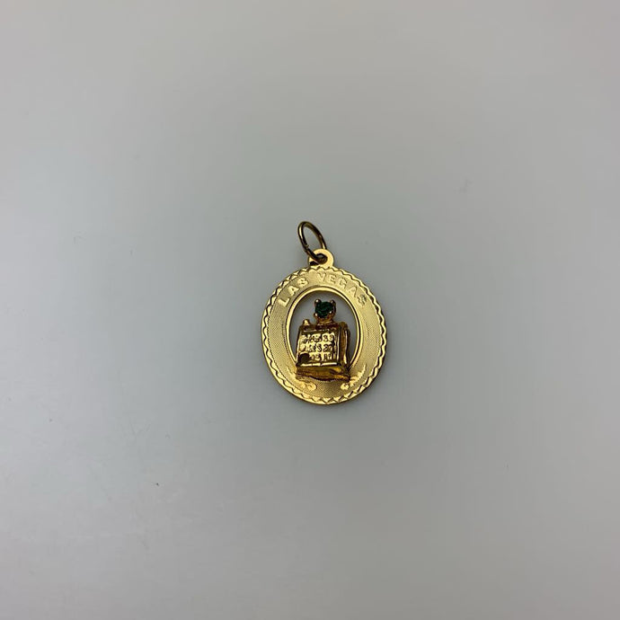 Gold Filled Green Crystal Las Vegas Souvenir Charm (1")