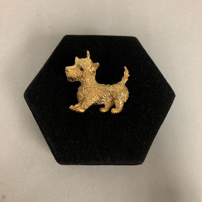 Goldtone Jeweled Eyes Scottie Dog Brooch Pin Signed (1.5")