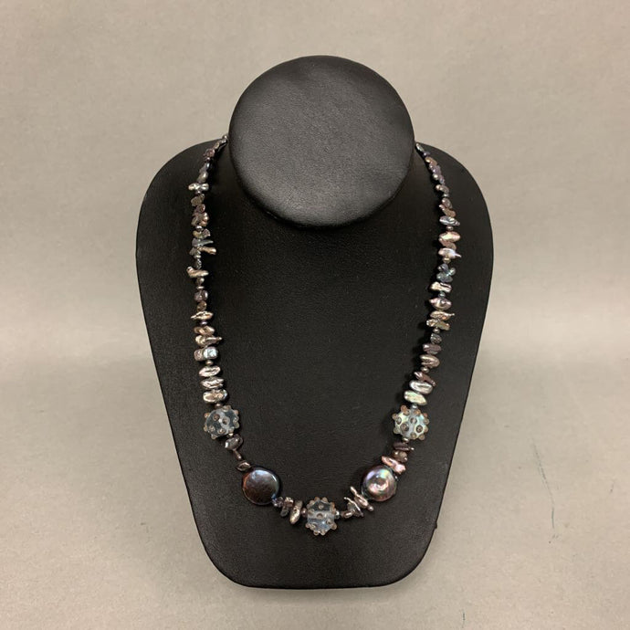 Gray Freshwater Pearl Art Glass Bead Necklace (19")