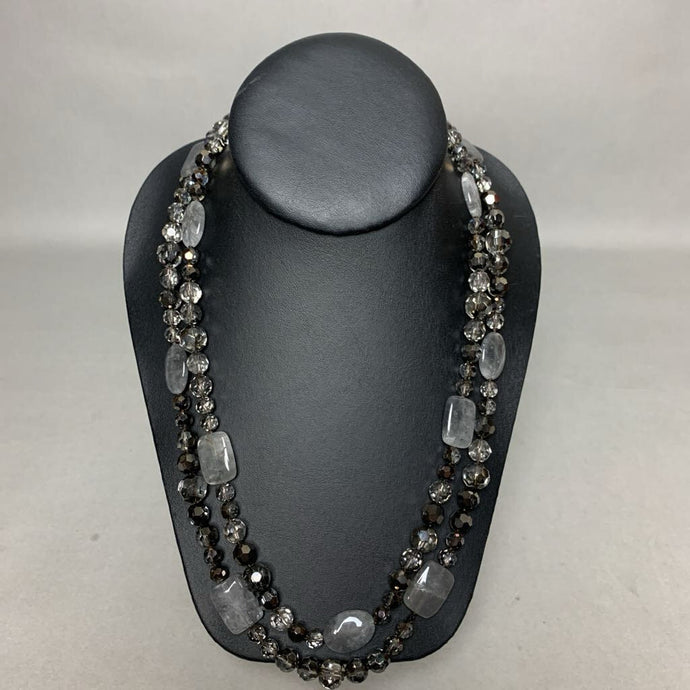 Gray Faceted Crystal Rutilated Quartz Beaded Long Necklace (52")