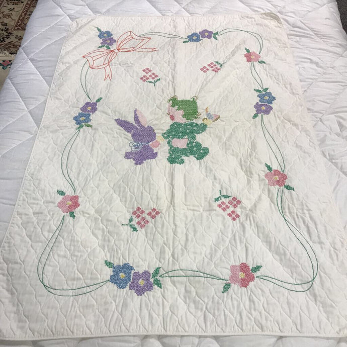 Handmade White Bunny Rabbit & Child Small Quilt (~58x39.5)