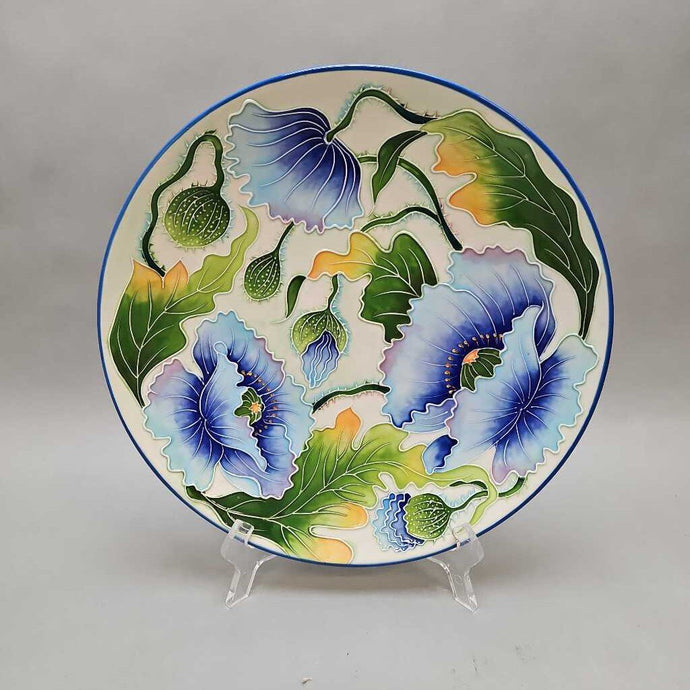 J McCall Blue Sky Cloisonne-Style Plate, Blue Green Floral (11.5")