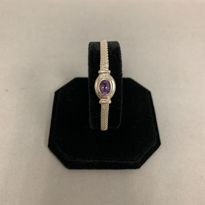Italian Sterling Mesh Bracelet w/ Amethyst Bezel (7")