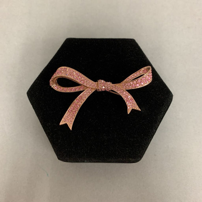 Kenneth J Lane Pink Rhinestone Bow Brooch Pin (2.5")