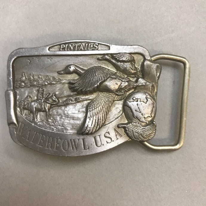1991-1992 Limited Edition Pintails Waterfowl Pewter Belt Buckle (2")