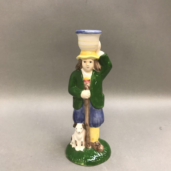 1992 The Haldon Group Porcelain Candle Stick Boy w Dog (8.5")