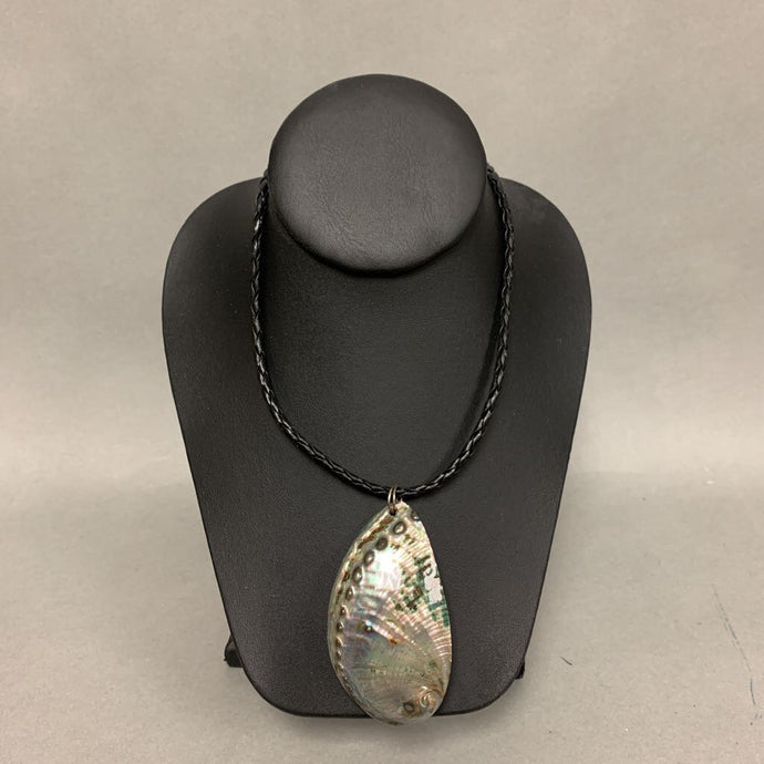 Abalone Pendant on Black Faux Leather Braided Toggle Necklace