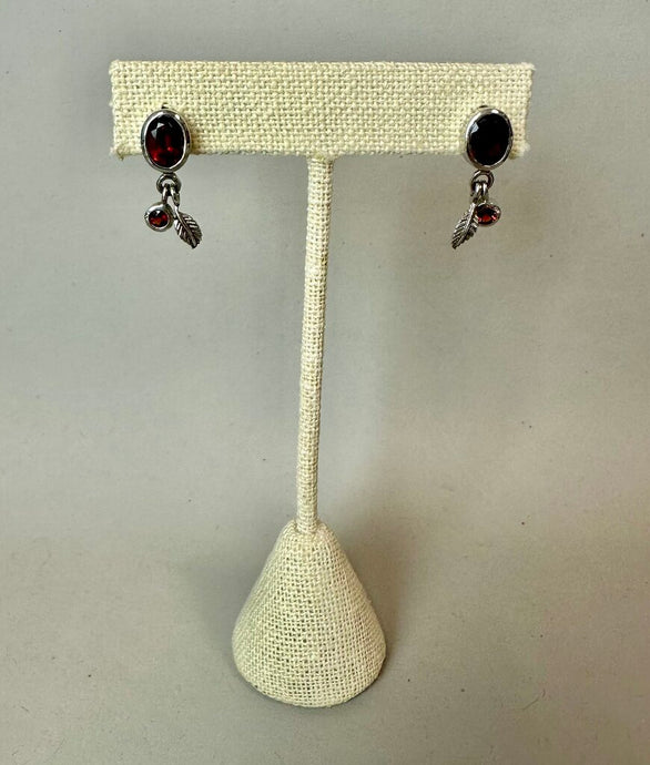 Sterling Garnet Leaf Charm Dangle Earrings (1")