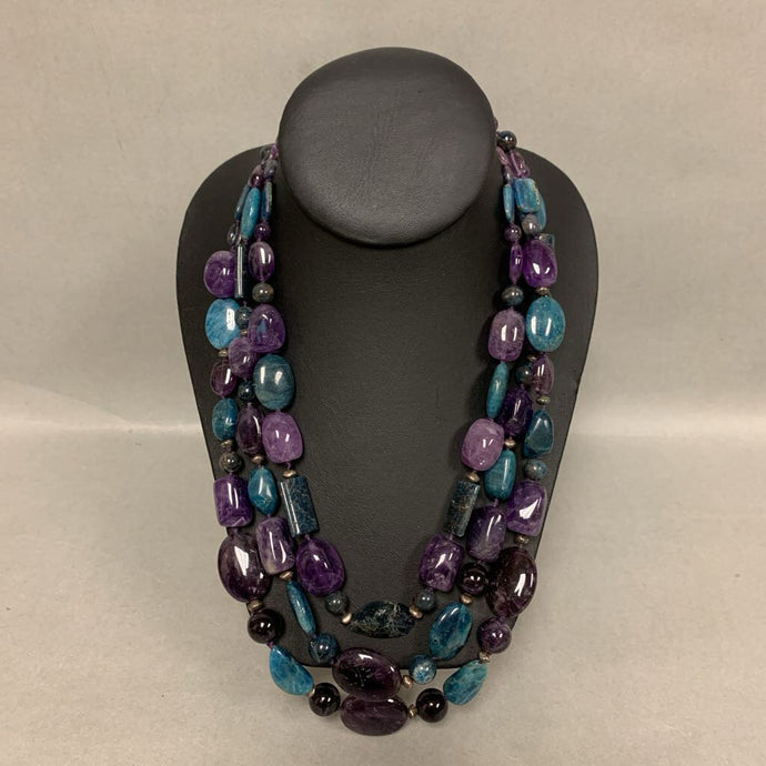 Amethyst & Blue Agate Layered Beaded Necklace (19")