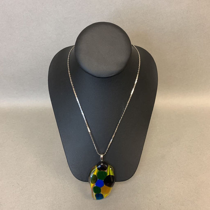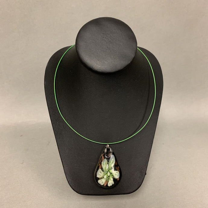 Art Glass Lilies Pendant on Green Wire Necklace (18")