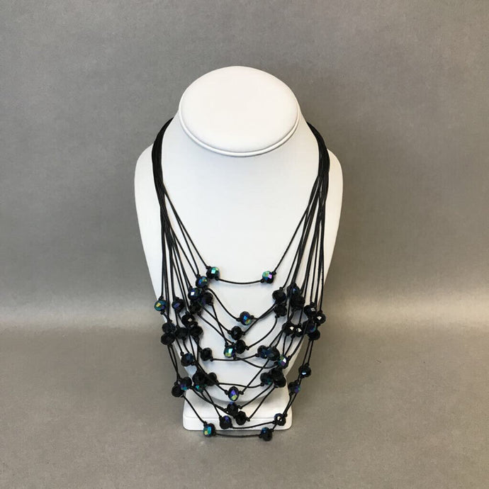 Black Crystal Bead on Cord Layered Necklace