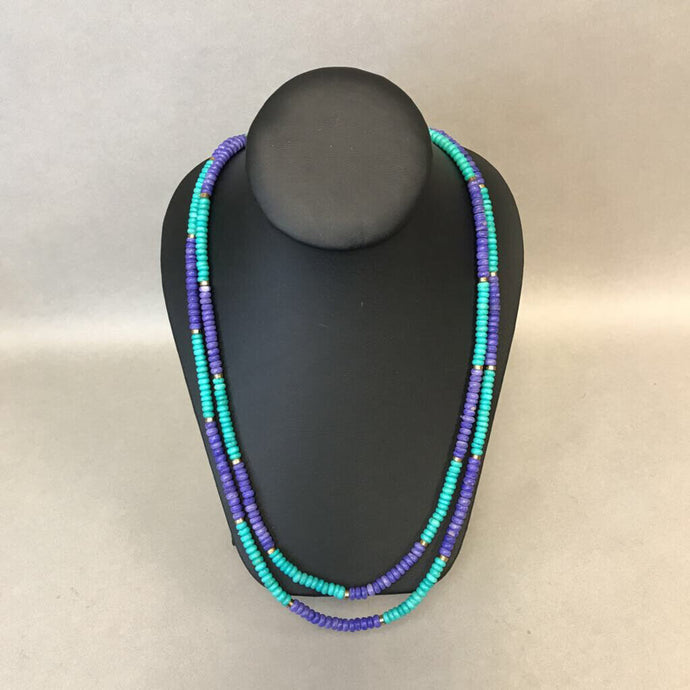 Blue & Teal Dyed Bone Rondelle Bead Double Strand Necklace