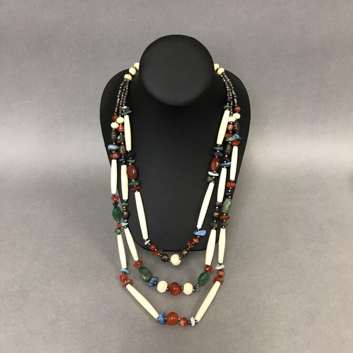 Bone Teal Stone Sea Glass & Shell Beaded Necklace (22")
