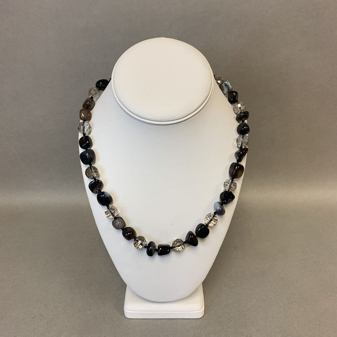 Botswana Agate w/ Swarovski Crystal Beaded Necklace