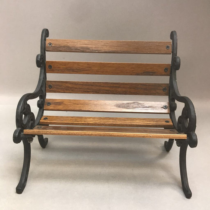 Cast Iron And Wood Slat Teddy Bear/Doll Miniature Park Bench (8")
