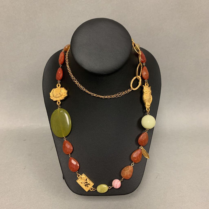 David Aubrey Goldtone Owl Lotus Multi-stone Beaded Chain Necklace (34")