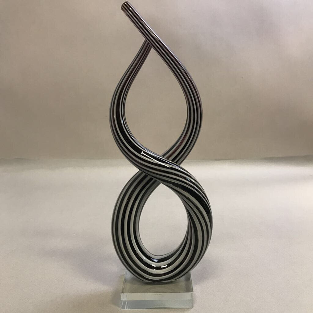 Murano Glass Black & White Twisted Column Art Glass Sculpture (13")(As Is)