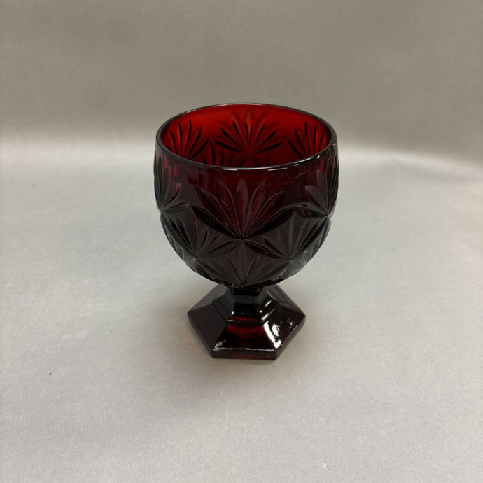 Vintage Ruby Red Cut Glass Pedestal Candy Bowl (6")