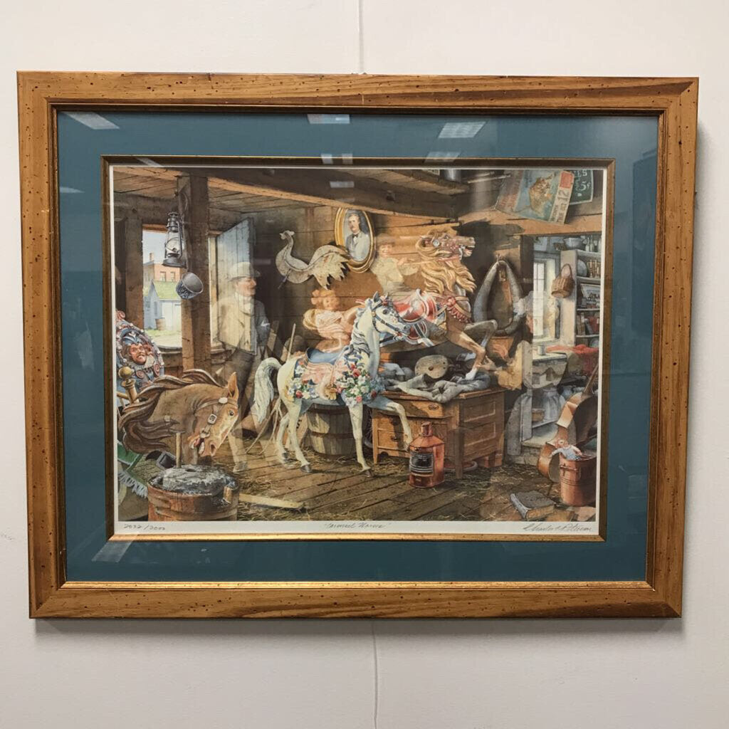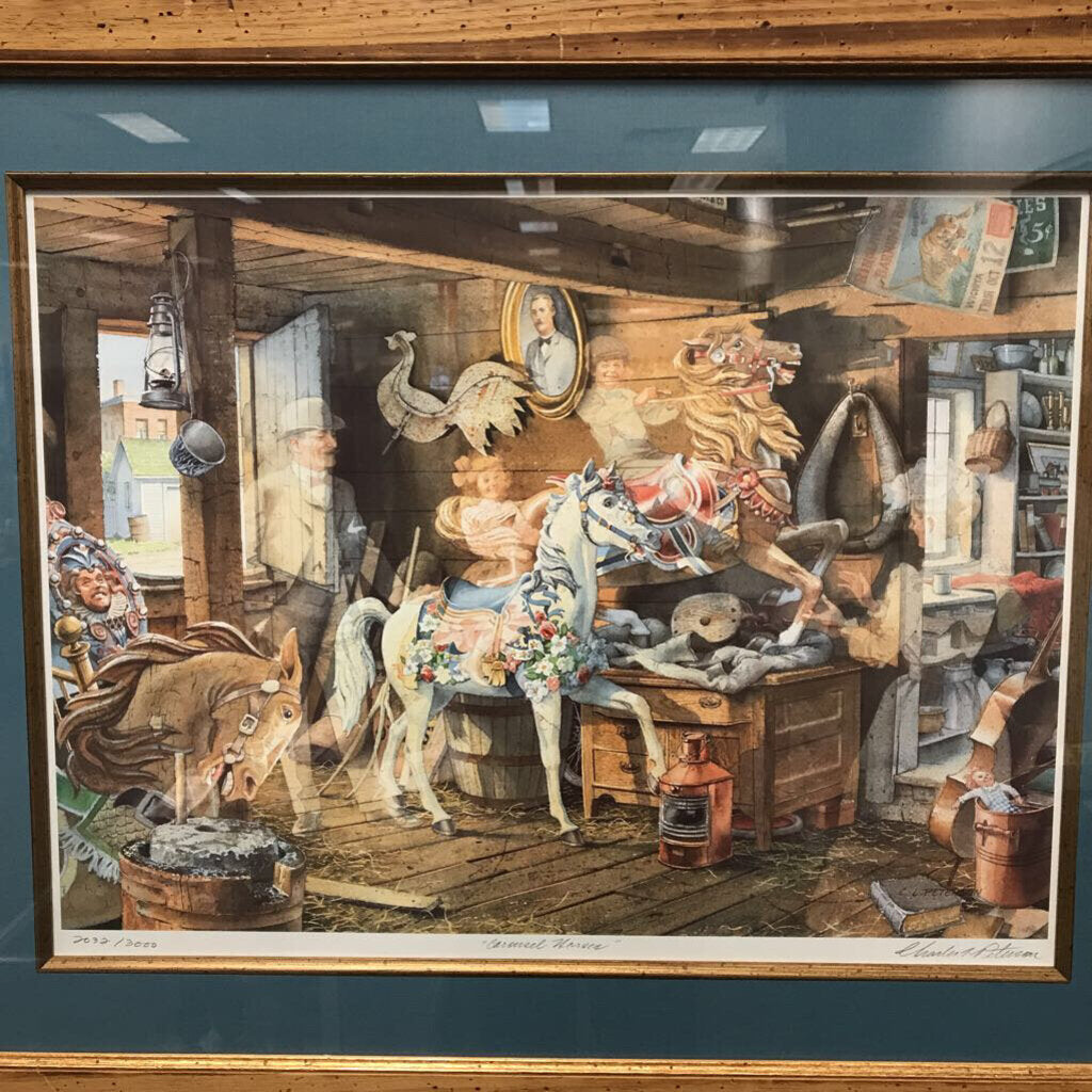 Charles Peterson Signed & Framed Print, "Carousel Horses" w/ Figures From the Past (29x35.5)