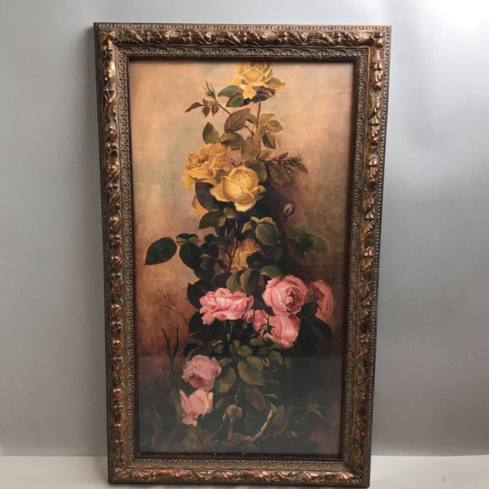 Gold Framed Porcelain Floral Quote Art (14.5x4)