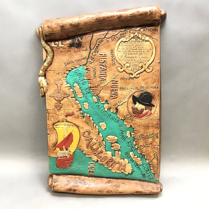 Vintage Chalkware Wallhanging Map - Baja California, Mexico (~24x15)
