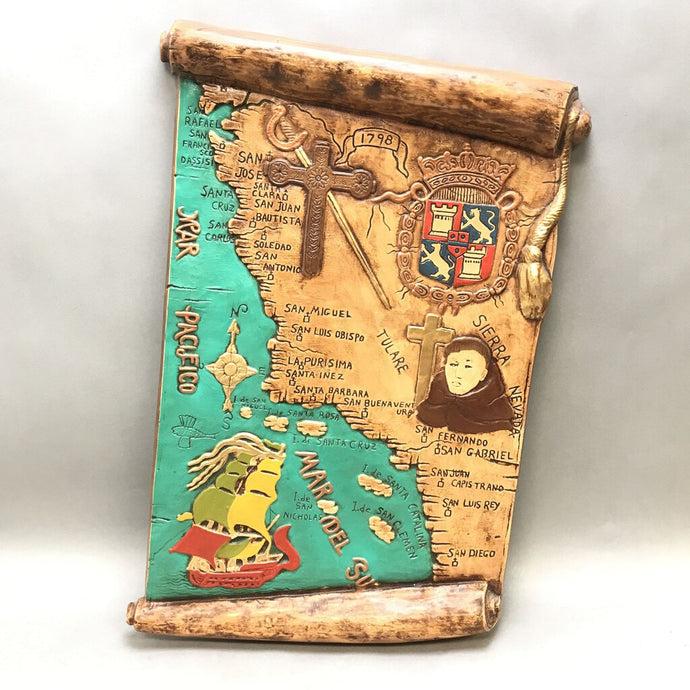 Vintage Chalkware Wallhanging Map - California & Pacific Ocean (~24x15)