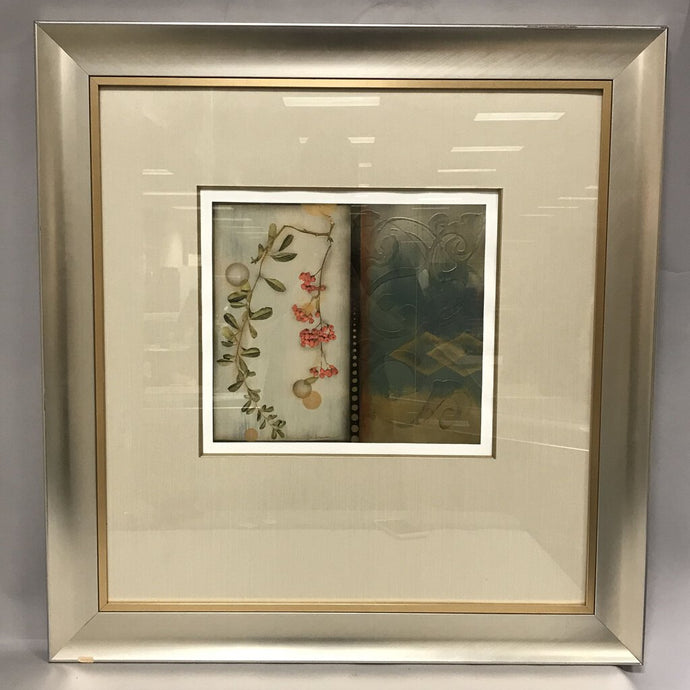 Framed Art Print - Floral Berries & Geographic Patterns (~32.5x31)