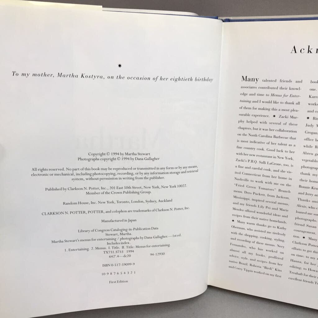Martha Stewart's Menus for Entertaining (1994) (10.25x8.5)