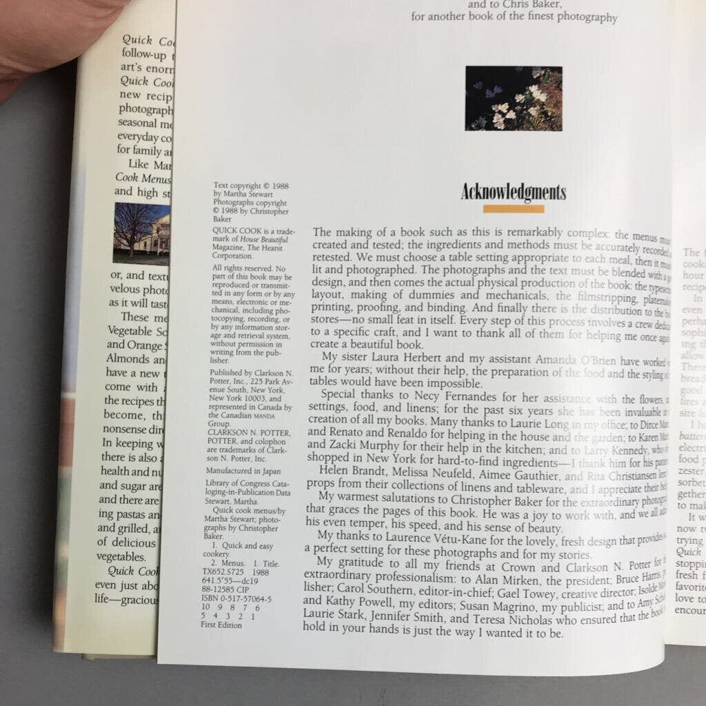 Martha Stewart's Quick Cook Menus (1988) (10.5x8.5)