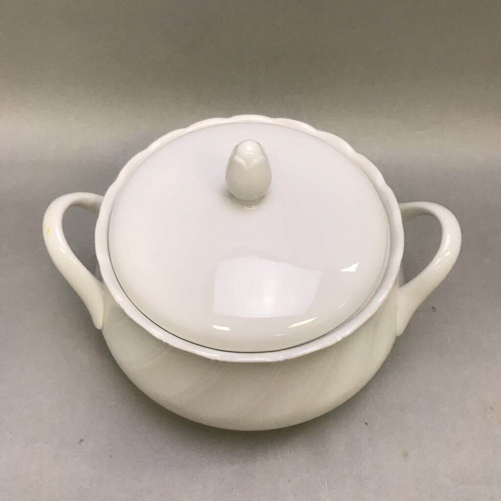 Sheffield Bone White Swirl Pattern Round Covered Dish Japan (9.5")