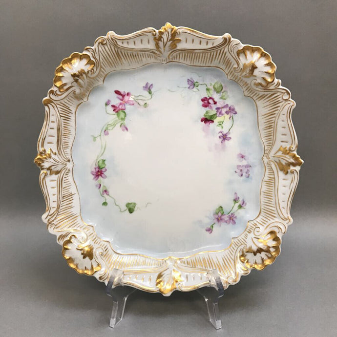 White Serving Platter / Square Plate, Gilded Trim & Floral Pattern (11x11)