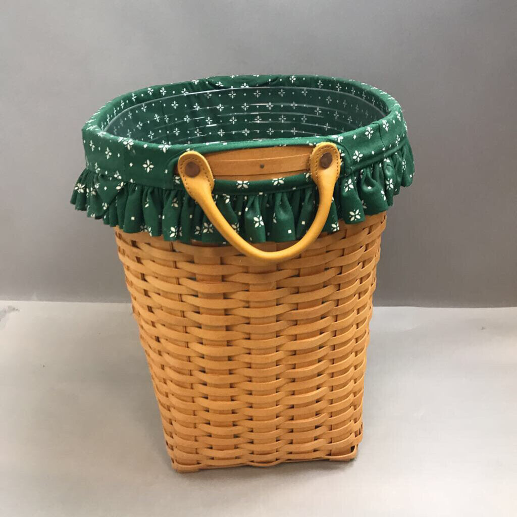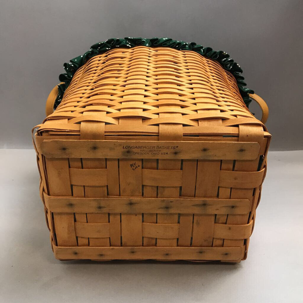Longaberger Basket w/ Leather Handles, Heritage Green Liner (2000) (~16x16x13)