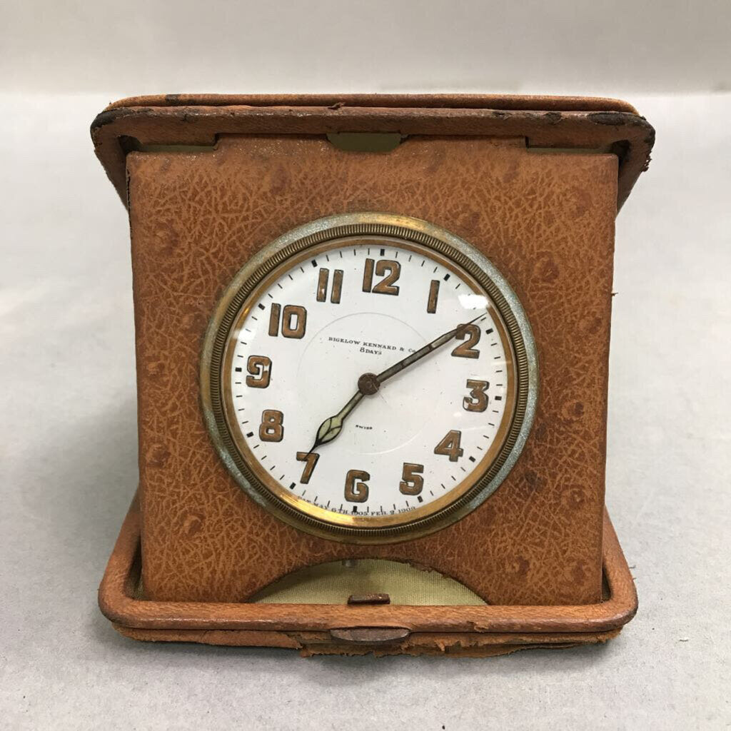Vintage Bigelow Kennard & Co 8-Day Travel Alarm Folding Clock (4x4.5) AS IS