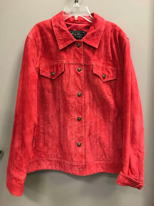 Terry Lewis Red Leather Button Up Jacket Size Large