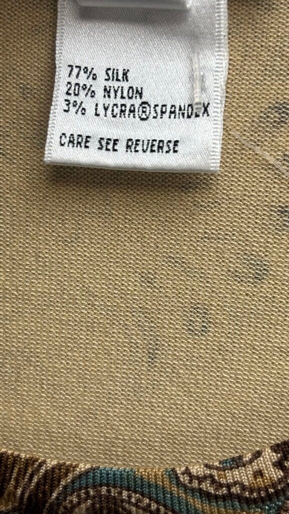 Talbots Silk Blend Brown Paisley Long Sleeve Shirt Size X