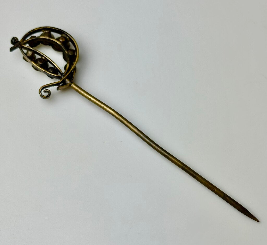 Antique Victorian Brass Clear Rhinestone Sword Hat Stick Pin (5.75")