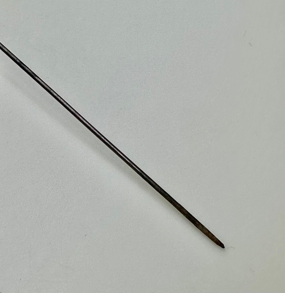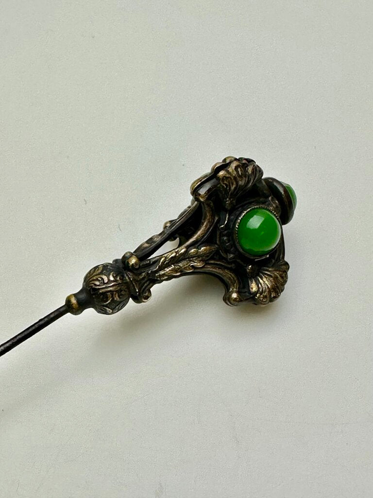 Antique Victorian Jade Brass Repousse Hat Stick Pin As-Is (9")
