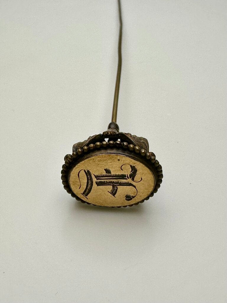 Antique Victorian Monogrammed Signet Butterfly Hat Stick Pin (9")