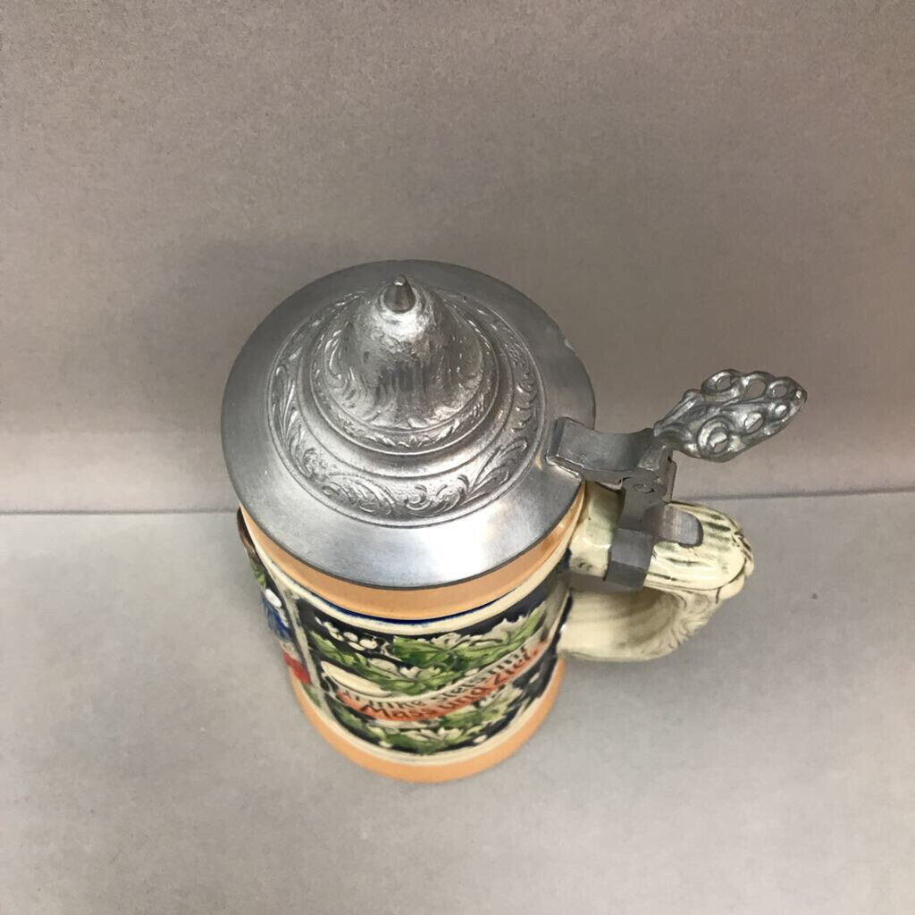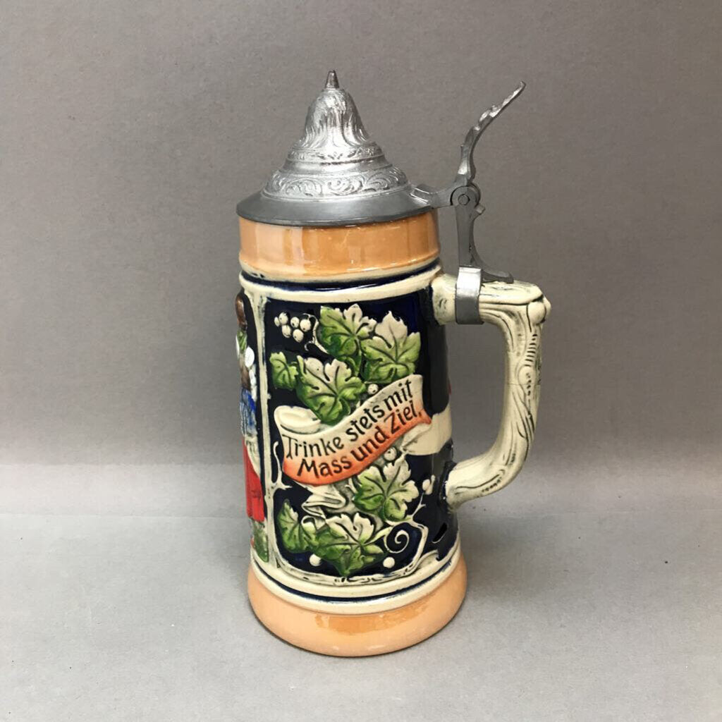 Cremer German Beer Stein; Outdoor Scene, "Trinke stets mit Maß und Ziel..."