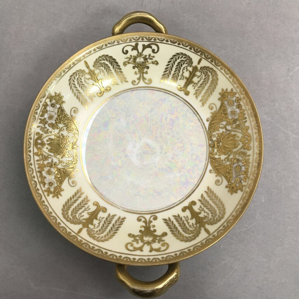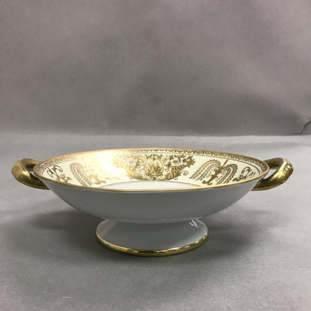 Noritake Pedestal Bowl, Gold Moriage Handles Pearlescent Dish (2x8)