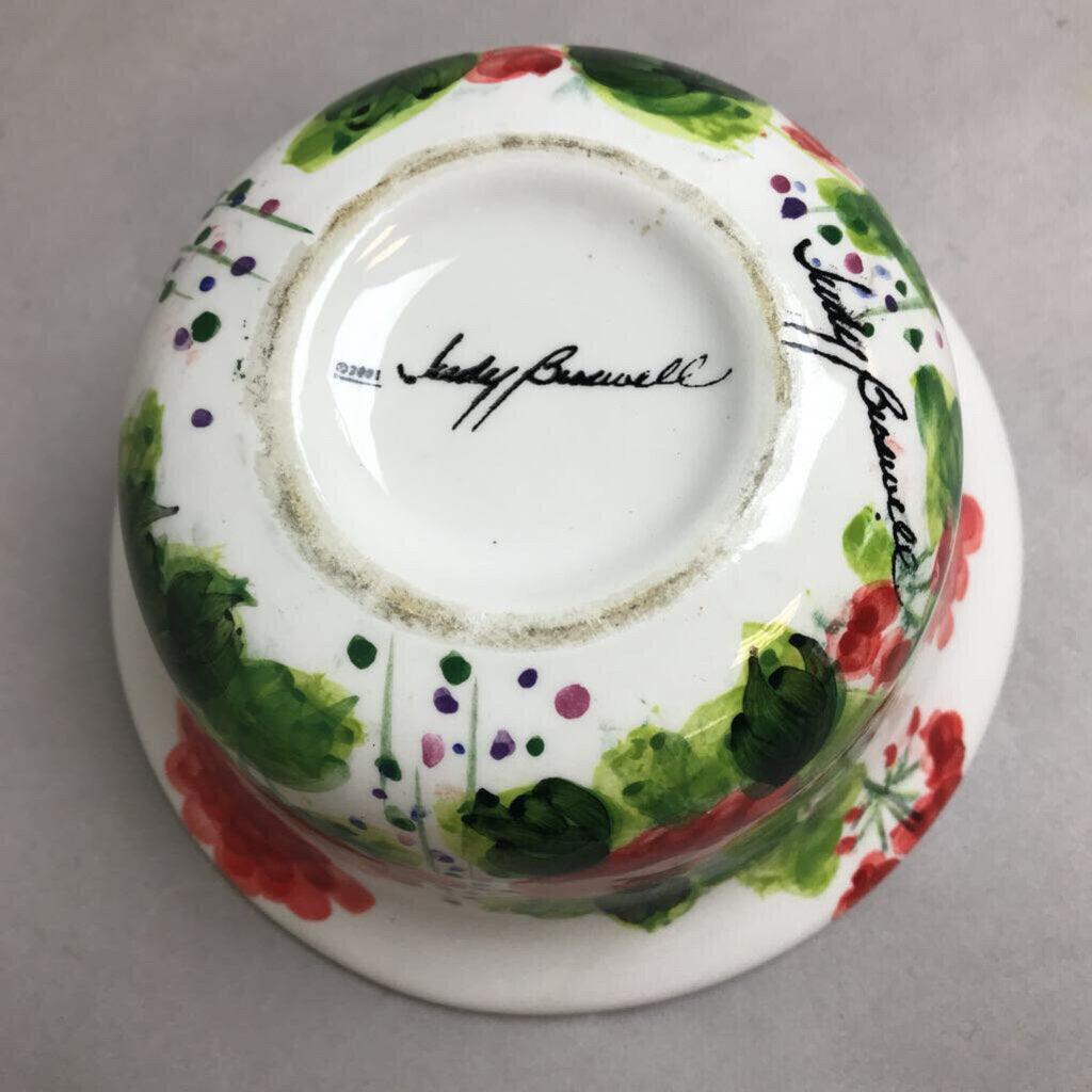 Red Geraniums Signed Judy Buswell Small Bowl (3x6)