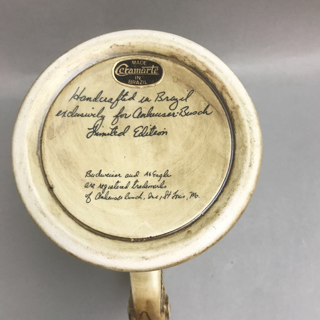 Vintage Ceramarte Budweiser Texas Beer Stein Mug Limited Edition Made In Brazil (9")