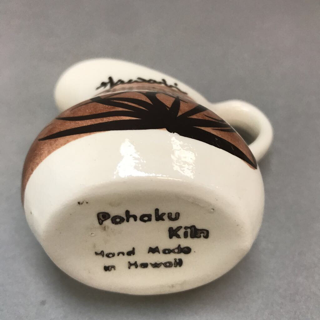 Vintage Hawaiian Pohaku Kiln Pitcher Palm Trees (3")
