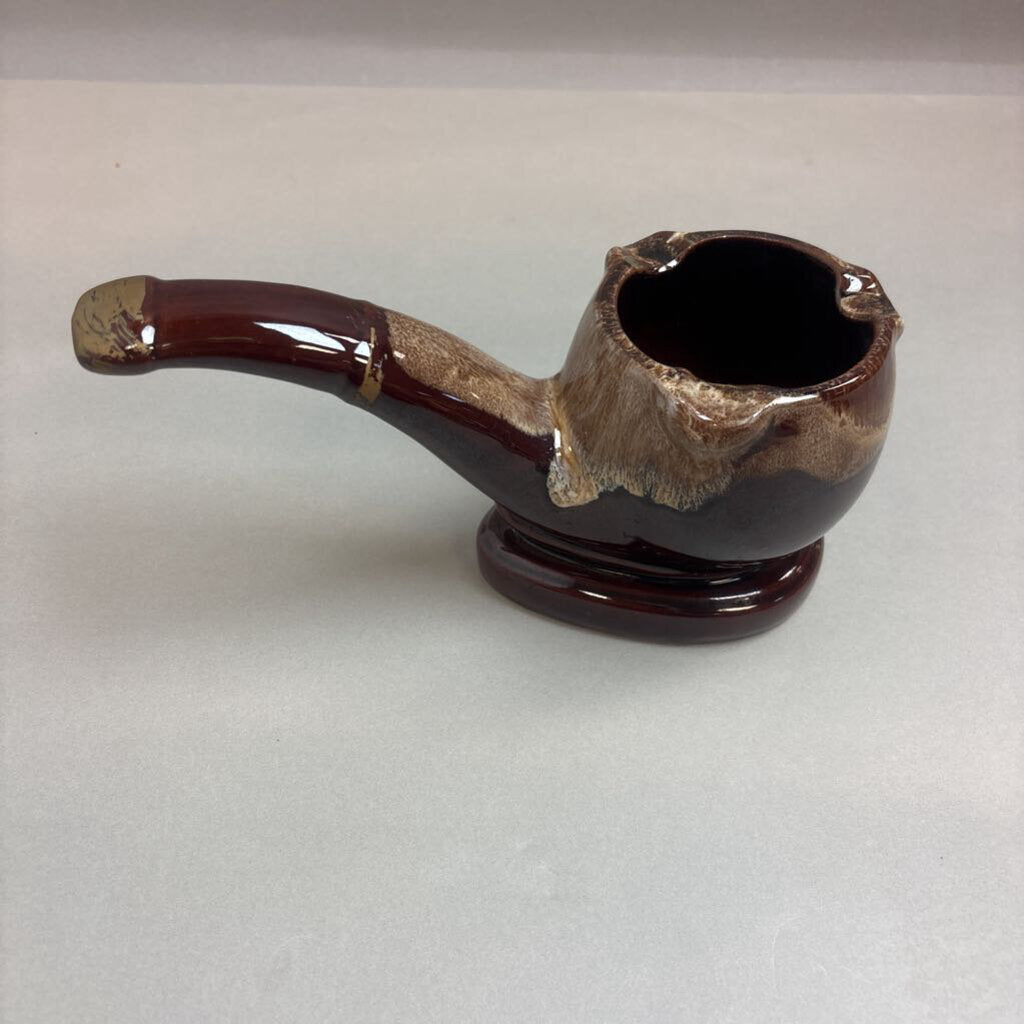 Vintage Napcoware Pipe Shaped Brown Drip Ceramic Ashtray (5x9)