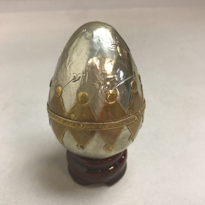 Vintage Artist Handmade Metal Tin & Brass Silver Decorative Egg (3")(As Is)