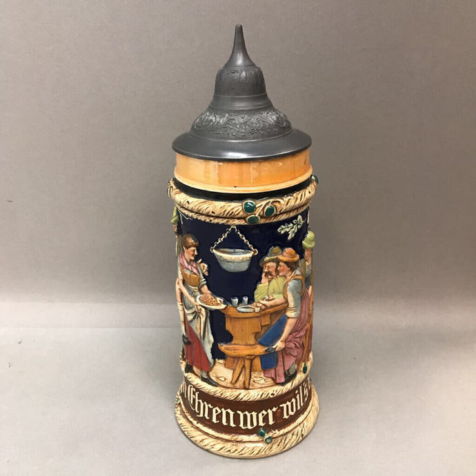 Vintage German Stein, Outdoor Bavarian Scene (10.5")