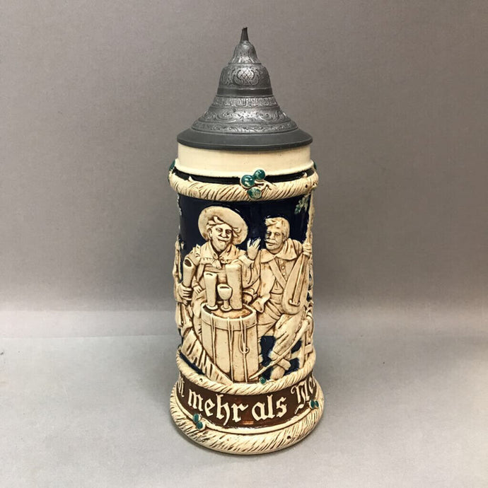 Vintage German Beer Stein, Baroque-era Soldiers/Leaders (6.25")
