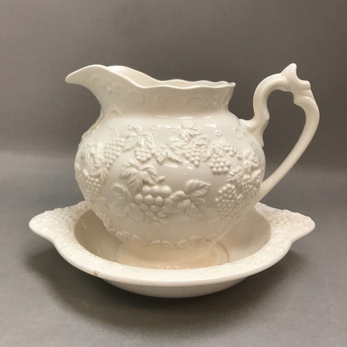 Vintage Fenton Grape Motif Porcelain Pitcher & Basin (6")