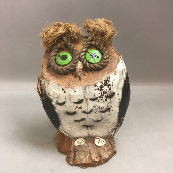 Vintage Carved Coconut Owl Shell Handmade Sculpture (9")