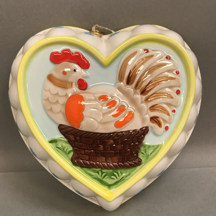 Vintage Heart Shaped Rooster Ceramic Mold Decor (9")